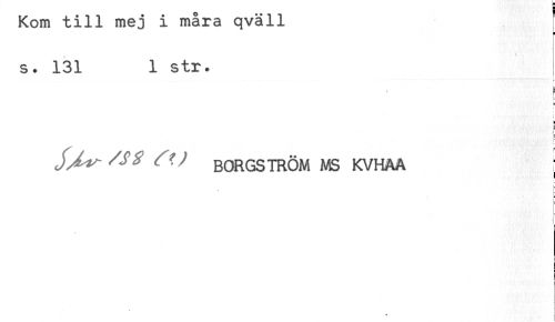//// Kom till mej i mara qvaii //// s. 131 1 str. //// E //// r //// < //// E //// J^^ XfF BORGSTRÖM MS KVHAA ; ////