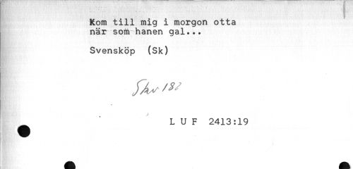 //// Kom till mig i morgon otta //// , när som hanen gal... //// ! Svensköp (Sk) //// * //// L U F 2413:19 ////