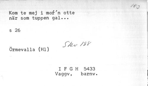 //// Kom te mej i mor'n otte //// när som tuppen gal... //// s 26 //// Örmevalla (Hl) //// - //// I F G H 5433 [ //// Vaggv, barnv. I //// i- //// 5 ////