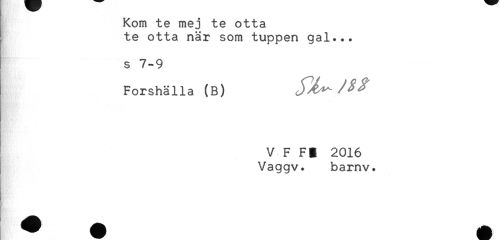 //// Kom te mej te otta //// te otta när som tuppen gal... //// s 7-9 //// Forshälla (B) //// V F FB 2016 //// Vaggv. barnv. ////