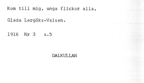 //// Kom till mig, unga flickor alla, //// Glada Lergöks-Valsen. //// 1916 Nr 3 s.5 //// DALKULLAN ////