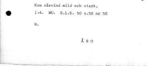 //// Kom vårvind mild och stark, //// ^ 1:4. MU. S.L.S. 50 s.58 nr 50 //// N. //// C- .'i //// ÅBO //// K; ////