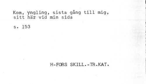 //// ! //// ' t //// < //// Kom, yngling, sista gång till mig, //// sitt här vid min sida //// s. 153 //// r //// H-FORS SKILL.-TR.KAT. //// i //// i ////