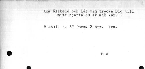 //// Kom älskade och låt mig trycka Dig till //// mitt hjärta du är mig kär... //// . //// * //// B 46:1, s. 37 Poem. 2 str. kom. //// * //// . //// * //// * ////