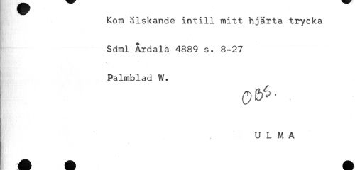 //// Kom älskande intill mitt hjärta trycka //// Sdml Årdala 4889 s. 8-27 //// Palmblad W. //// j ULMA ////
