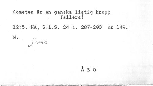 //// Kometen är en ganska listig kropp //// fallera!. //// 12:5. NA. S.L.S. 24 s. 287-290 nr 149. //// N. //// J) l^K) ////