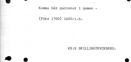 //// Komma här gudinnor i gemen - //// (Före 1700) 1600-t.h. //// * - //// B //// KB:S SKILLINGTRYCKSREG. ////