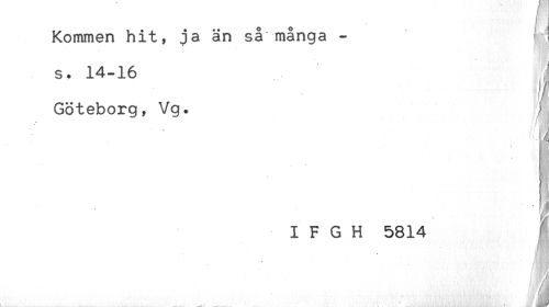 //// o //// Kommen hit, ja än så många - i //// s. 14-16 //// Göteborg, Vg. //// < //// I F G H 5814 f' //// S '. ! - ////