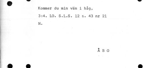 //// Kommer du min vän i håg, //// 3:4. LO. S.L.S. 12 s. 43 nr 21 //// N. //// * p //// ÅBO ////