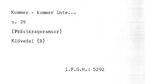 //// Kommer - kommer inte... //// s. 39 //// (Prästkrageramsor) //// Klövedal (B) //// I.F.G.H.: 5292 ////