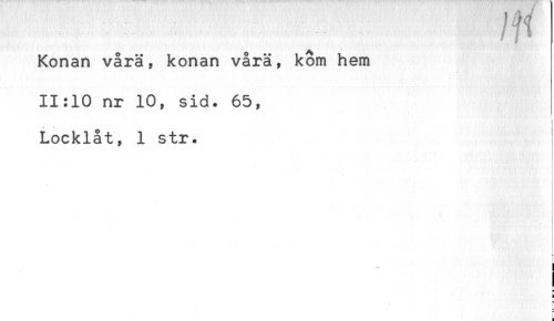 //// Konan vårä, konan våra, kom hem //// 11:10 nr 10, sid. 65, //// < //// t //// Locklåt, 1 str. ' //// * //// H //// H //// P ////