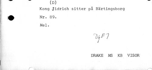 //// Kortg Jidrich sitter på Bärtingsborg //// ^ Nr. 89. //// Mel. //// DRAKE MS KB VISOR //// t * t- ////