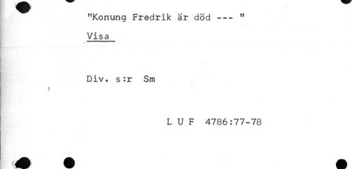 //// "Konung Fredrik är död --- " //// Visa //// * //// Div. s :r Sm //// ) //// L U F 4786:77-78 ////