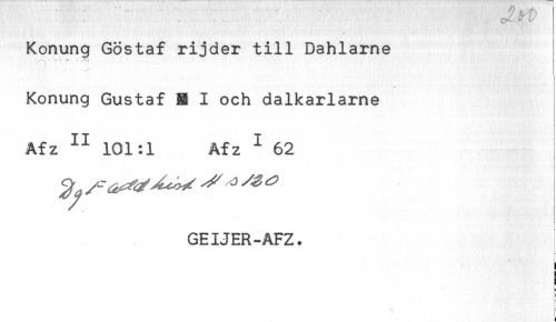 //// Konung Göstaf rijder till Dahlame //// * , //// < //// Konung Gustaf H I och dalkarlarne //// Afz II 101:1 Afz I 62 //// V //// t //// GEIJER-AFZ. ////