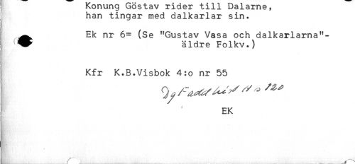 //// jf --- ---^ ^ — - //// han tingar med dalkarlar sin. //// ^^ Ek nr 6= (Se "Gustav Vasa och dalkarlama"- //// ^^^^ äldre Folkv.) //// Kfr K.B.Visbok 4:o nr 55 //// EK ////