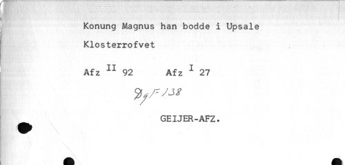 //// ..... .....'...... . ... : //// H ! //// i //// Konung Magnus han bodde i Upsale //// E //// Klosterrofvet //// . //// Åfz II 92 Afz I 27 //// GEIJER-AFZ. ////