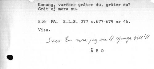 //// Ronung, vartore gråter au, gråter auv //// Gråt ej mera nu. //// 8:6 PA. S.L.S. 277 s.677-679 nr 46. //// Visa. //// t //// ÅBO ////