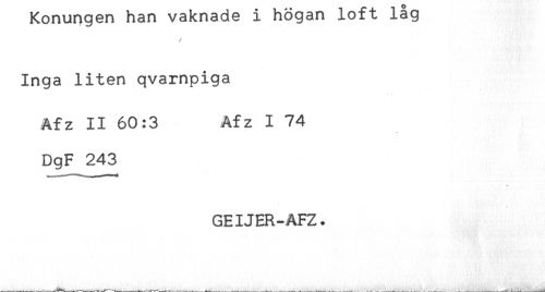 //// / //// Inga liten qvarnpiga //// Afz II 60:3 Afz I 74 //// DgF 243 //// GEIJER-AFZ. ////