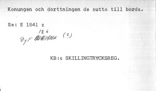 //// Konungen och dorttningen de sutto till bords. //// t //// Se: E 1841 z //// a //// t //// KB:s SKILLINGTRYCKSREG. //// ) //// i //// ! ////