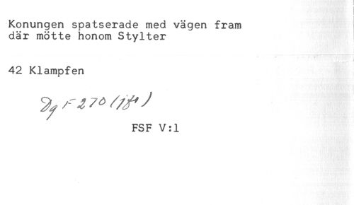 //// Konungen spatserade med vägen fram //// där mötte honom Stylter //// * //// 42 Klampfen //// < //// FSF V:1 ////