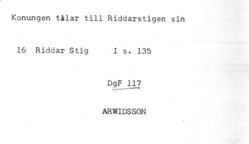//// Konungen tilar till Riddarstigen sin //// * //// 16 Riddar Stig I s. 135 //// DgF 117 //// V //// ARWIDSSON ////