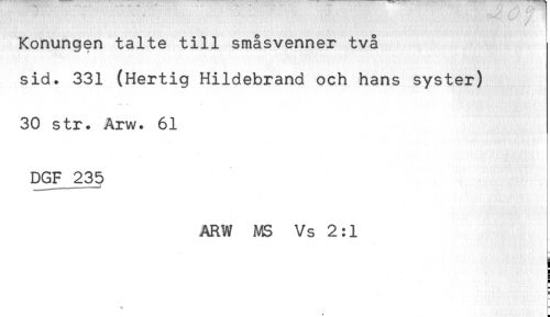 //// Konungen talte till småsvenner två //// sid. 331 (Hertig Hildebrand och hans syster) //// 30 str. Årw. 61 //// DGF 235 //// - * //// ARW MS Vs 2:1 //// I //// * //// H //// 3 //// * - ////
