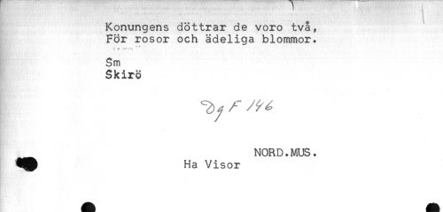 //// Konungens döttrar de voro två, //// För rosor och ädeliga blommor. //// * & //// t a , y //// - //// 3m //// Skirö //// NORD. MUS. //// Ha Visor ////