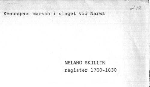 //// Konungens marsch i slaget vid Narwa //// . <i. . .'/t 'f //// .. < //// f //// f //// MELANG SKILLTR //// register 1700-1830 //// H ////