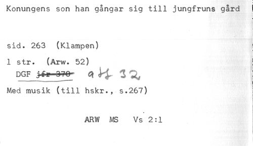 //// honungens son nan gangar sig tin jungiruns gara ! //// < //// * //// . —.....— .. //// sid. 263 (Klampen) //// 1 str. (Arw. 52) ; //// DGF ^fi" 370- //// Med musik (till hskr., s.267) //// { //// i //// < //// i //// i //// ARW MS Vs 2:1 ////