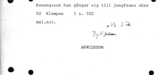 //// Konungsson han gangar sig till jungfruns dörr //// 52 Klampen I s. 332 //// mel.not. *. //// ARWIDSSON ////