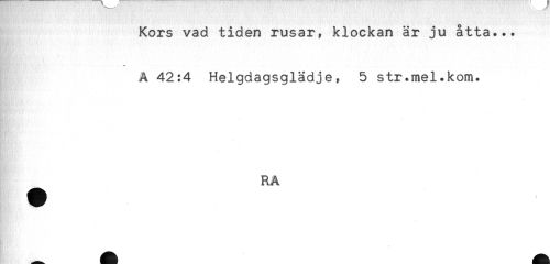//// Kors vad tiden rusar, klockan är ju åtta... //// * //// A 42:4 Helgdagsglädje, 5 str.mel.kom. //// RA ////