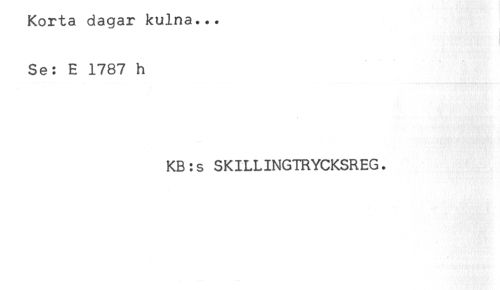 //// Korta dagar kulna... //// Se: E 1787 h //// KB:s SKILLINGTRYCKSREG. ////