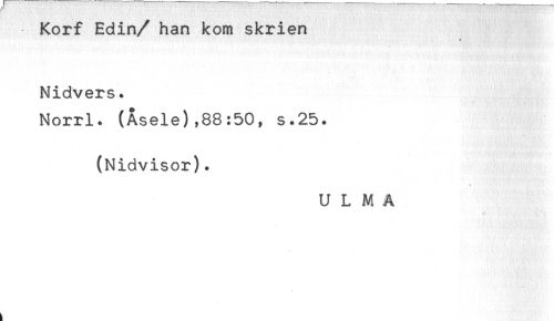 //// Korf Edin/ han kom skrien //// + //// Nidvers. //// Norrl. (Åsele),88:50, s.25. //// (Nidvisor). //// ULMA ////