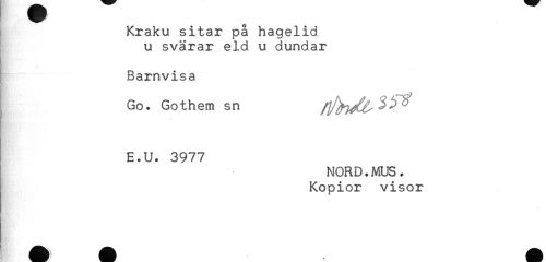 //// Kraku sitar på hagelid //// u svarar eld u dundar //// Barnvisa //// Go. Gothem sn //// E.U. 3977 //// NORD.MUS. //// Kopior visor //// ! ////