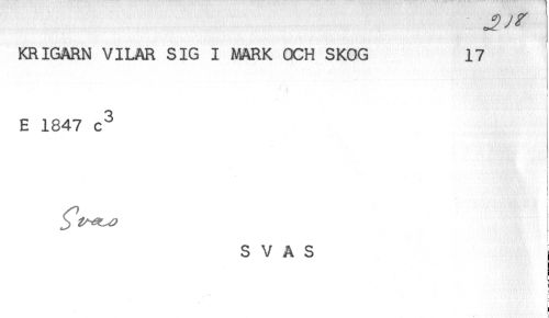 //// KRIGARN VILAR SIG I MARK OCH SKOG 17 //// .. - //// E 1847 c^ //// < //// i //// ! //// ! //// ! //// S V A S l //// < //// t. ////