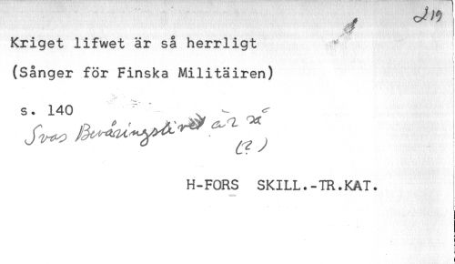 //// Kriget lifwet är så herrligt ^ //// ! //// (Sånger för Finska Militäiren) //// "h. * *'*" //// S. 140 ^ ^ <r //// ) //// ' ! i //// H-FORS SKILL.-TR.KAT. //// ! ////