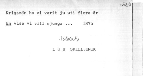 //// Krigsmän ha vi varit ju uti flera år //// En visa vi vill sjunga ... 1875 //// i //// L U B SKILL.UNIK //// t //// — //// i //// H //// i ////