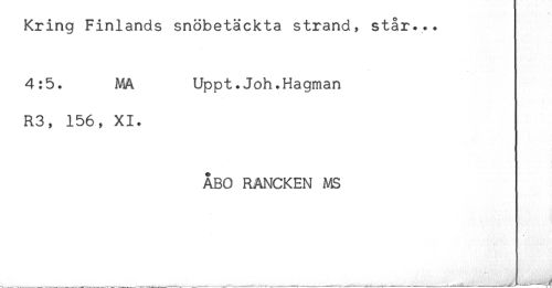 //// Kring Finlands snöbetäckta strand, står... //// 4:5. MA Uppt.Joh.Hagman //// R3, 156, XI. //// ÅBO RANCKEN AS ////