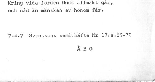 //// och nåd än mänskan av honom får. //// 7:4.? Svenssons saml.häfte Nr 17.s.69-70 //// ÅBO ////