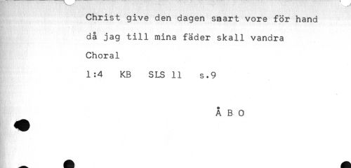 //// Christ give den dagen saart vore för hand //// då jag till mina fäder skall vandra //// Choral //// 1 :4 KB SLS 11 s.9 //// ÅBO ////