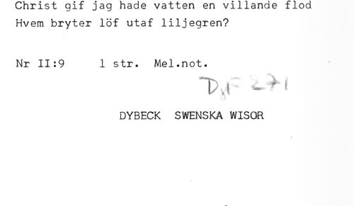 //// Hvem bryter löf utaf liljegren? //// Nr 11:9 1 str. Mel.not. //// i/,, i * - ^ //// DYBECK SWENSKA WISOR //// t ////