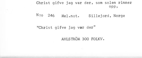 //// ^ * *-3- ^ ^ "A- v ^ j ^t v ^ A* ^ ^ ? ^ ^ *** ^ ^ ^ — — * //// opp, //// N:o 246 Mel.not. Sillejord, Norge //// "Christ gifve jag var der" //// AHLSTRÖM 300 FOLKV. ////