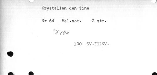 //// Krystallen den fina //// Nr 64 Mel.not. 2 str. //// I //// 100 SV.FOLKV. ////