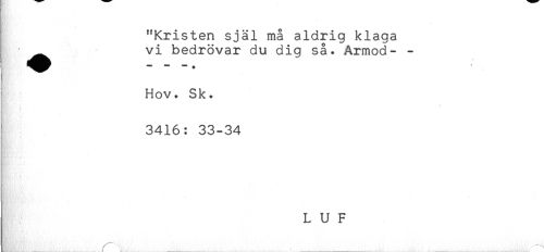 //// "Kristen själ må aldrig klaga //// ^ vi bedrövar du dig så. Armod- - //// Hov. Sk. //// 3416: 33-34 //// * //// L U F //// L ___( t. _____ ////