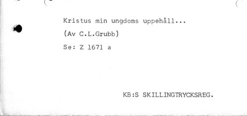 //// Kristus min ungdoms uppehåll... //// (Av C.L.Grubb) //// Se: Z 1671 a //// I //// KB:S SKILLINGTRYCKSREG. //// ! ' ////