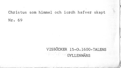 //// Christus som himmel och iordh hafver skapt //// i //// Nr. 69 //// < //// i //// - //// . //// < //// n //// VISBÖCKER 15-0.1600-TALENS * //// GYLLENMÄRS //// ___..... ////