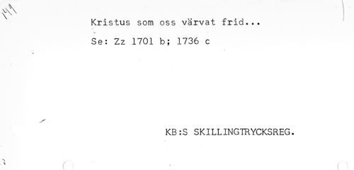 //// Kristus som oss värvat frid... //// * //// Se: Zz 1701 b; 1736 c //// KB:S SKILLINGTRYCKSREG. ////