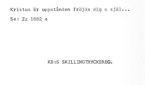 //// Kristus är uppstånden fröjda dig o själ... //// Se: Zz 1882 a //// KB:S SKILLINGTRYCKSREG. ////