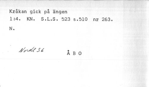 //// Kråkan gick på ängen //// 1:4. KN. S.L.S. 523 s.510 nr 263. //// N. //// A B O ////