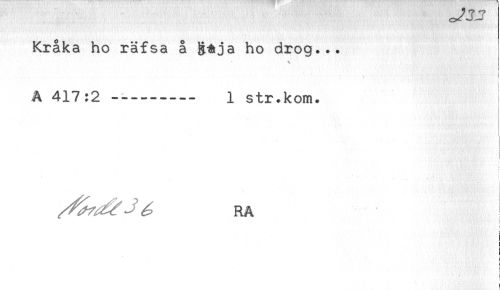 //// Kråka ho räfsa å ho drog... //// ^ I //// A 417:2 ---- 1 str.kom. //// -.- .. . f //// ^^^^ RA //// i //// < //// ) //// ) ////